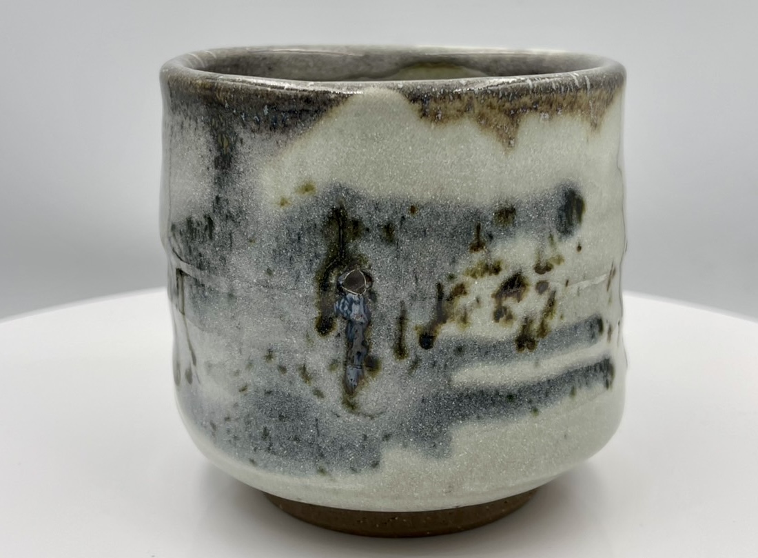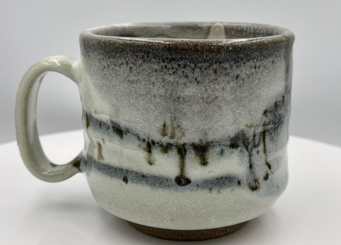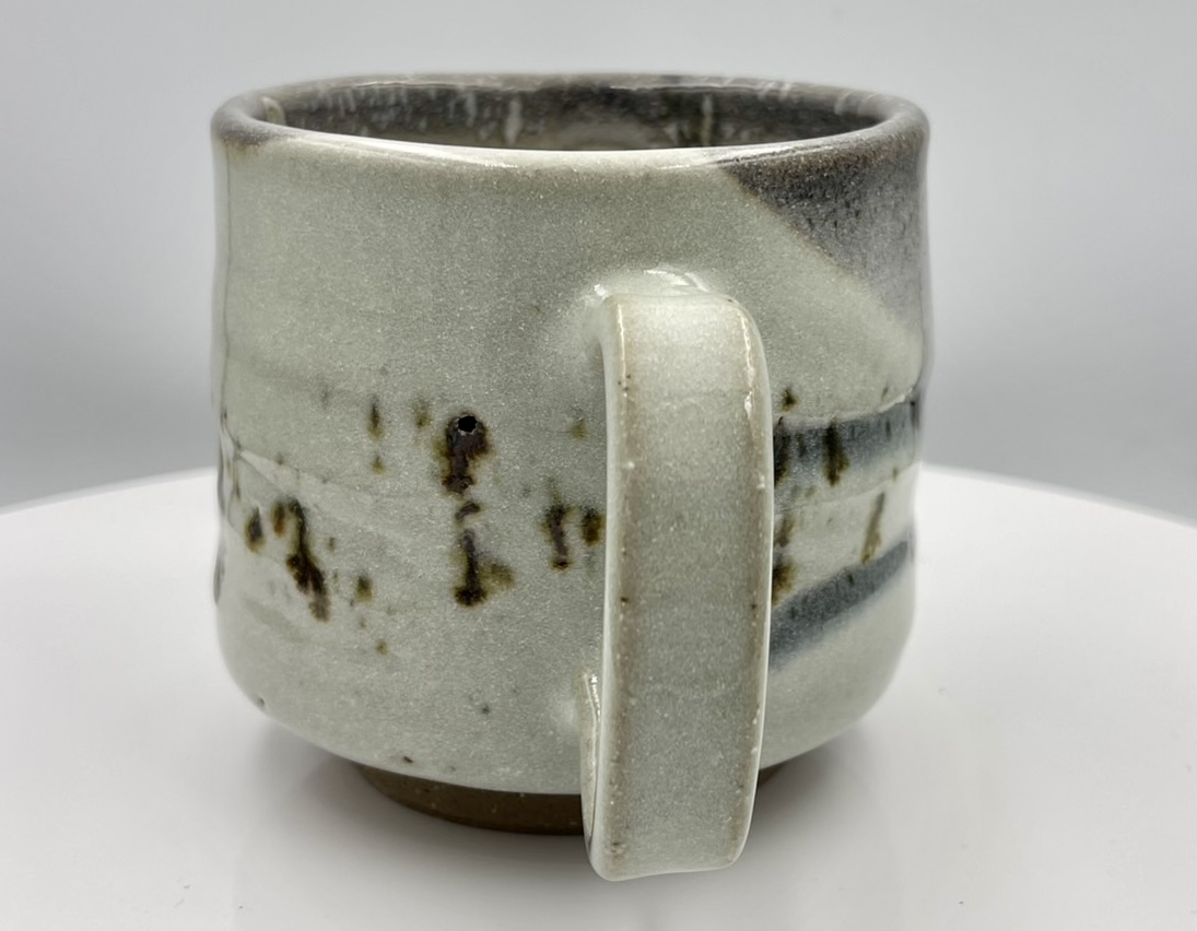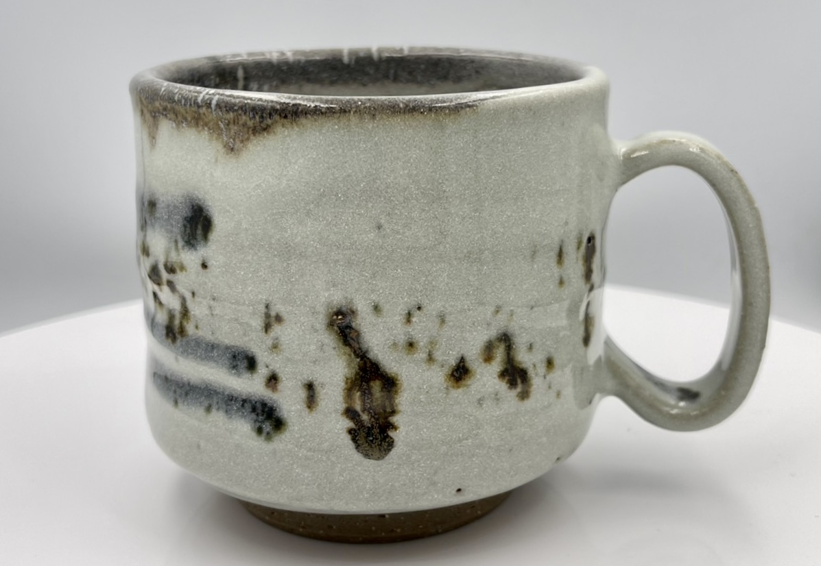這只杯子擱在案頭,釉色瞧著舒心。那白釉鋪得厚薄有致,像極了極地渦旋肆虐過後,清晨推門看見的那層新雪,底下透著點泥土的憨實。釉面上那幾道深邃的墨痕,乍看是雪地裡頑皮孩子留下的腳印,又像是重雪披蓋的遠山寒林。