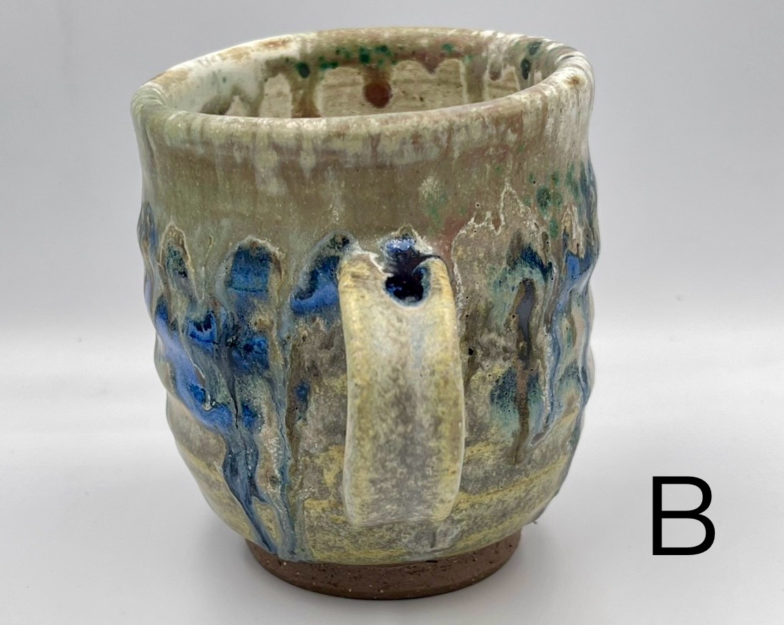 器形樸實圓潤,不追求完美對稱,反而多了幾分手作的真誠。杯身自然起伏,把手粗壯好握,用起來特別順手。內壁可見拉坯指痕與釉水流動軌跡,每一處都是獨一無二。